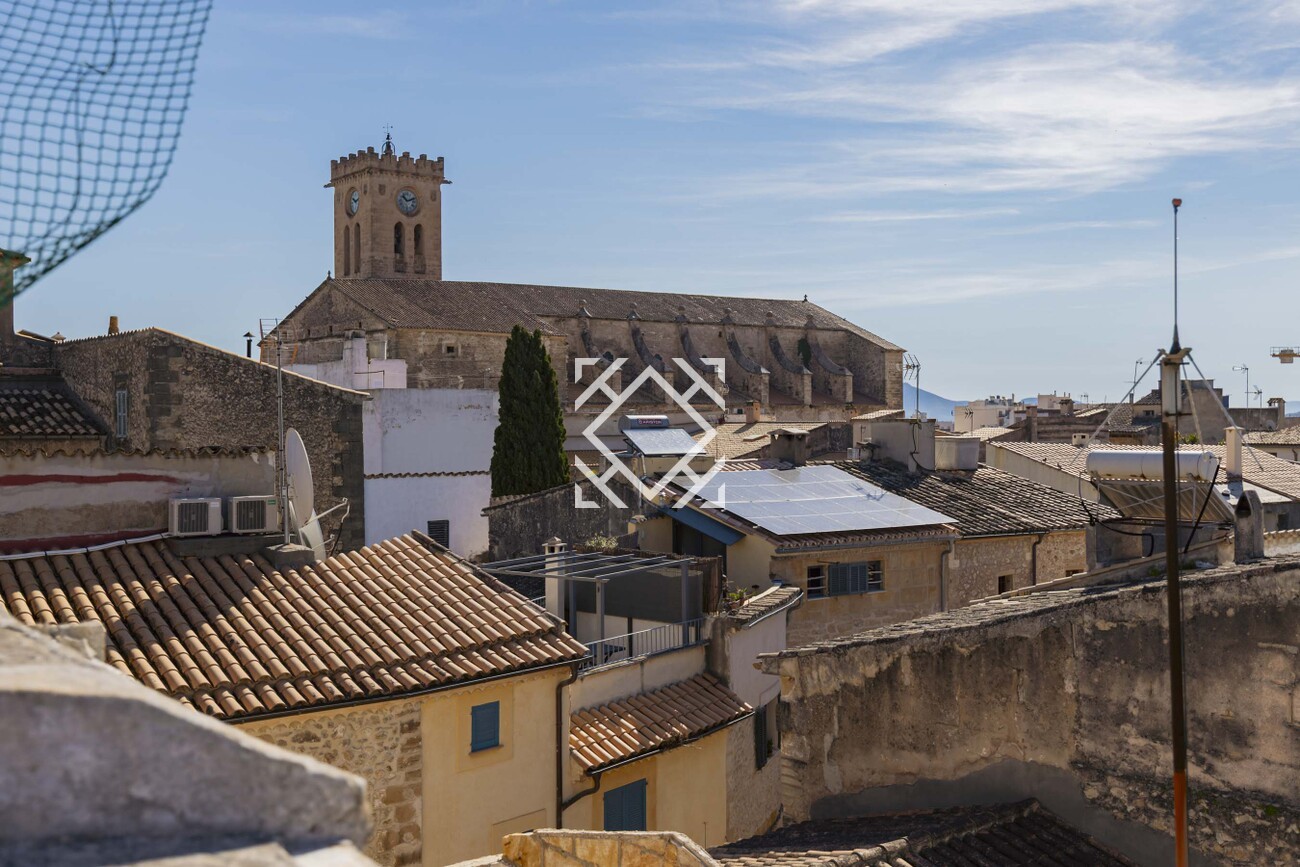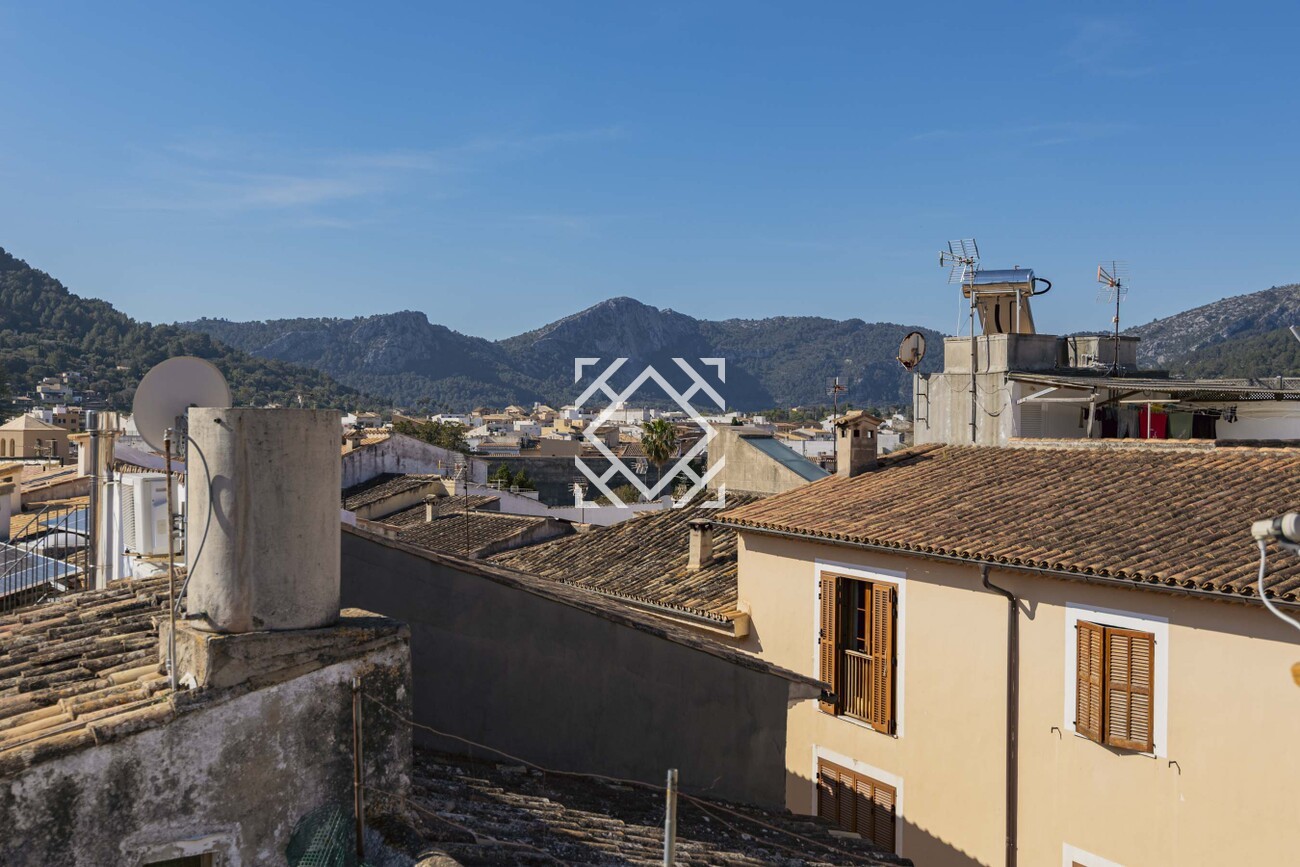 La vivienda dispone de salón, comedor, cocina, escalera tradicional, techos altos y estancias llenas de personalidad, además de un amplio garaje, un valor muy apreciado en el casco antiguo. Su magnífica terraza con vistas panorámicas y las bonitas vistas a la montaña del Puig de Maria convierten esta propiedad en una oportunidad verdaderamente especial.